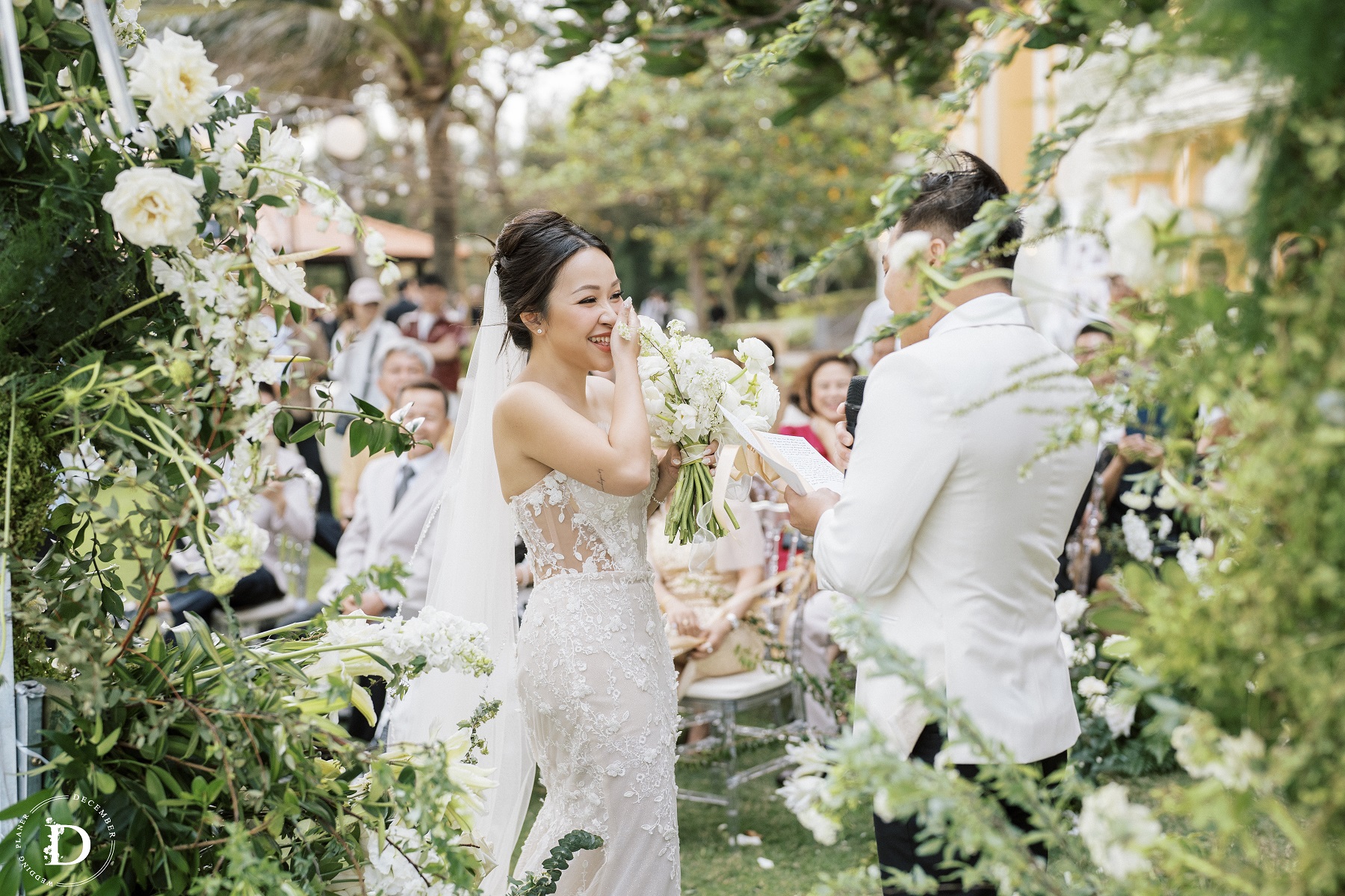 I still vividly remember the moment Lộc held the microphone, his hand slightly trembling, to say his vow in a language he had diligently practiced for days. At first, Kaylie even slightly doubted whether Lộc could fully express in Vietnamese. And yet, before knowing it, her eyes gradually welled up with emotions. Not because the words flowed smoothly or were completely precise, but because sincerity has its own way to reach the other person's heart.